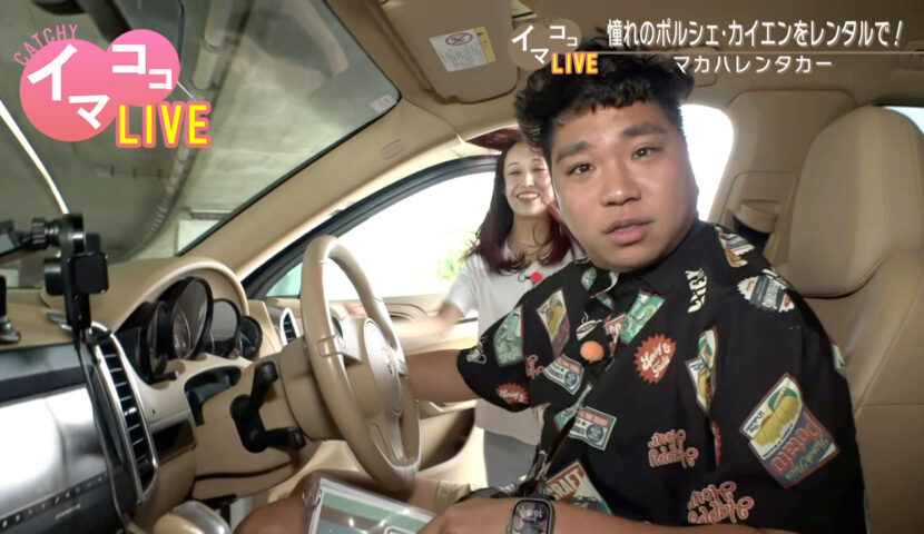 本日放送のQAB琉球朝日放送「CATCHY」イマココLIVEのコーナーにマカハレンタカーが出演しました。 イマココLIVEの中継ではカシスオレンジ仲本さんが、ポルシェ・カイエンをレンタルできるマカハレンタカーをご紹介いただきました!
